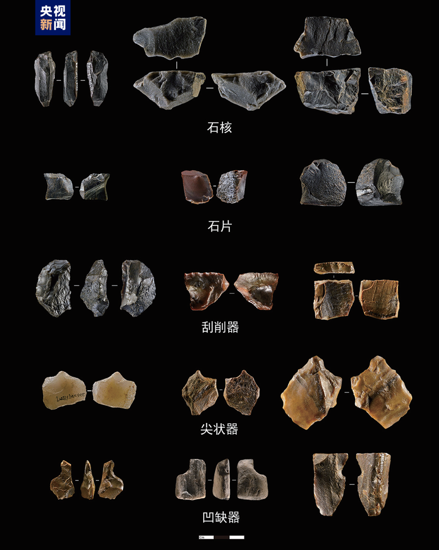 Relics unearthed at the Mengxi River Paleolithic site in Ziyang City, Sichuan Province. /CMG