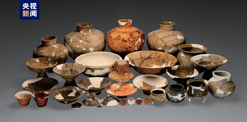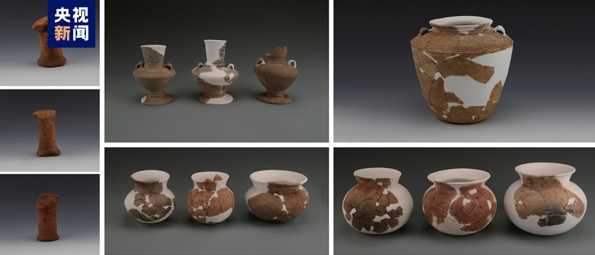 Relics unearthed at the Qujialing Neolithic site in Jingmen City, Hubei Province. /CMG