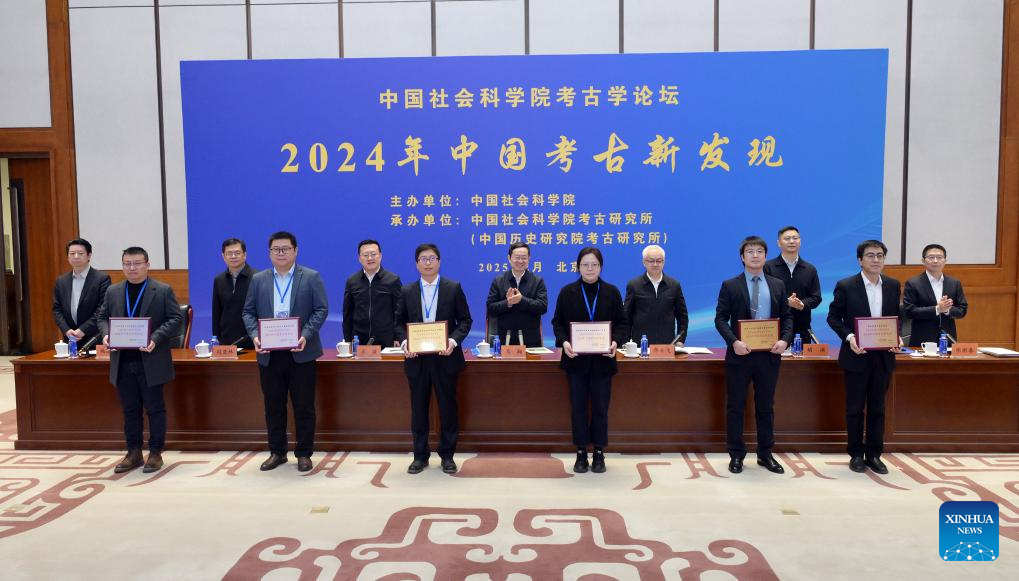 Representatives of China's top new archaeological discoveries in 2024 receive certificates at an annual forum in Beijing, capital of China, Feb 19, 2025. (PHOTO / XINHUA)
