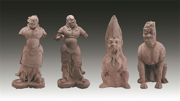 Warrior figurines and tomb-guarding beasts found at the site. [Photo provided to China Daily]