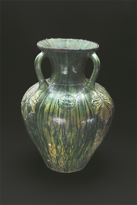 A Persian-style green jar found at the site. [Photo provided to China Daily]