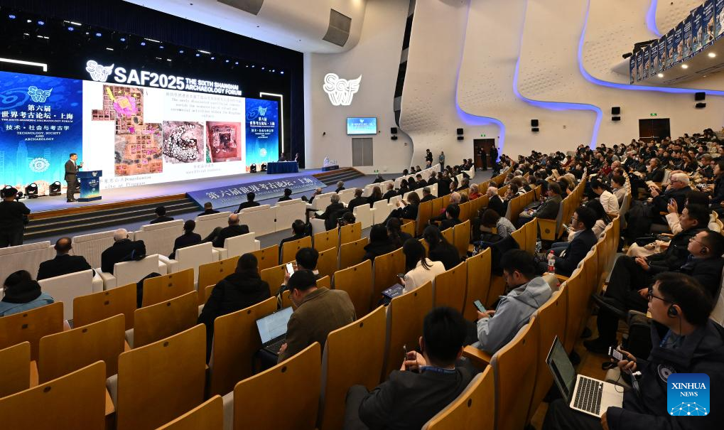This photo taken on Dec. 16, 2025 shows the scene of the sixth Shanghai Archaeology Forum (SAF2025) in Shanghai, east China. Jointly hosted by the Chinese Academy of Social Sciences, Shanghai Municipal People's Government and the National Cultural Heritage Administration of China, the SAF2025 themed on "Technology, Society and Archaeology" has attracted nearly 300 experts and scholars from over 40 countries and regions around the world to attend. (Xinhua/Li He)