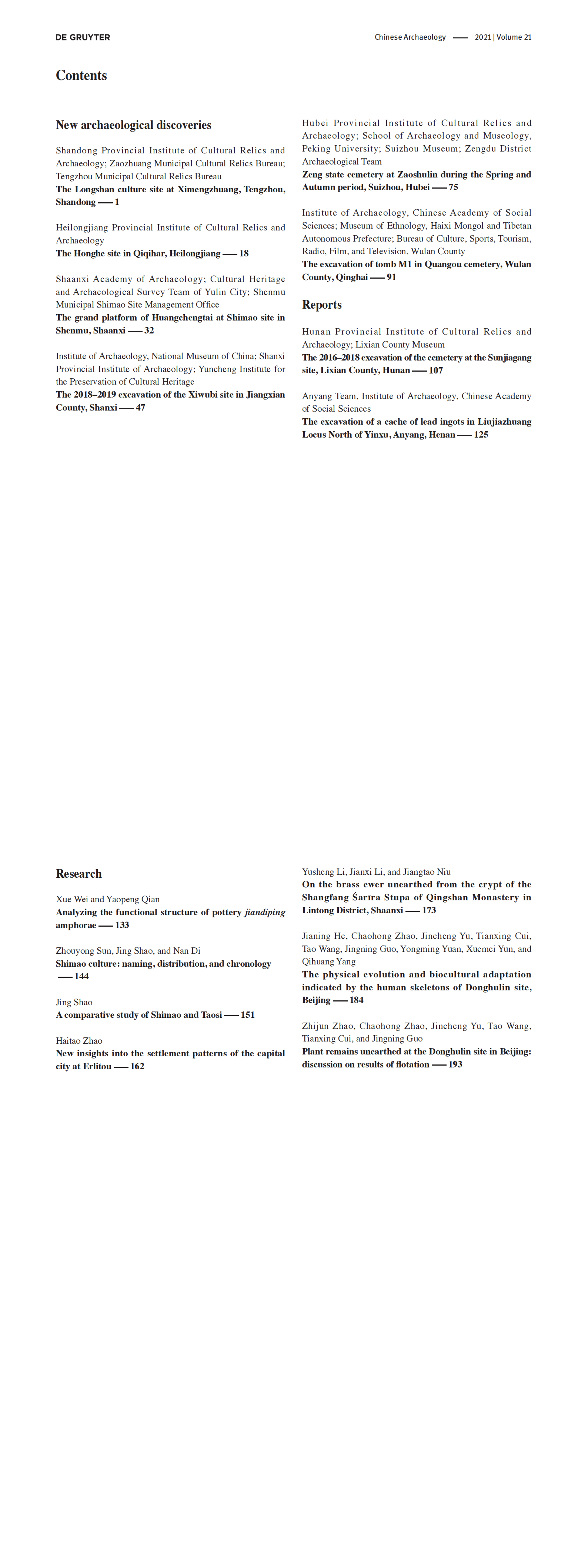 Chinese Archaeology VOLUME 21