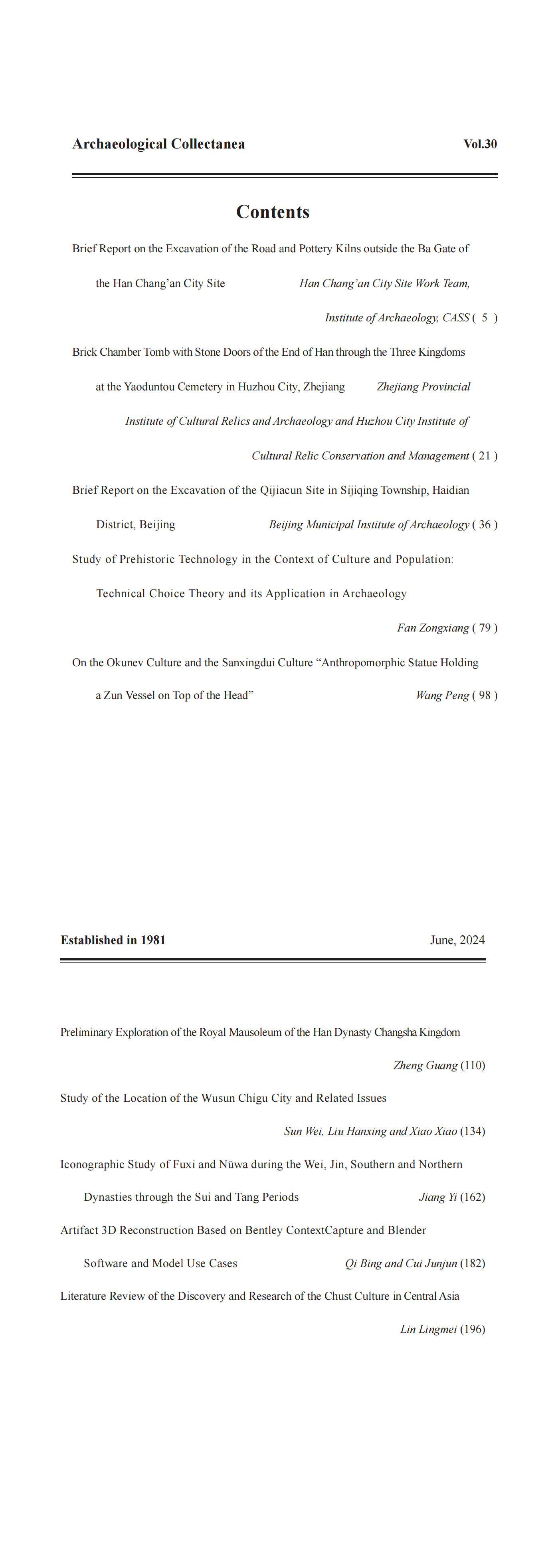 Address: No. 1, National Stadium North Road, Chaoyang District, Beijing (Post Code: 100101) E-mail:kaogu@cass.org.cn FAX: 86-10-87421997