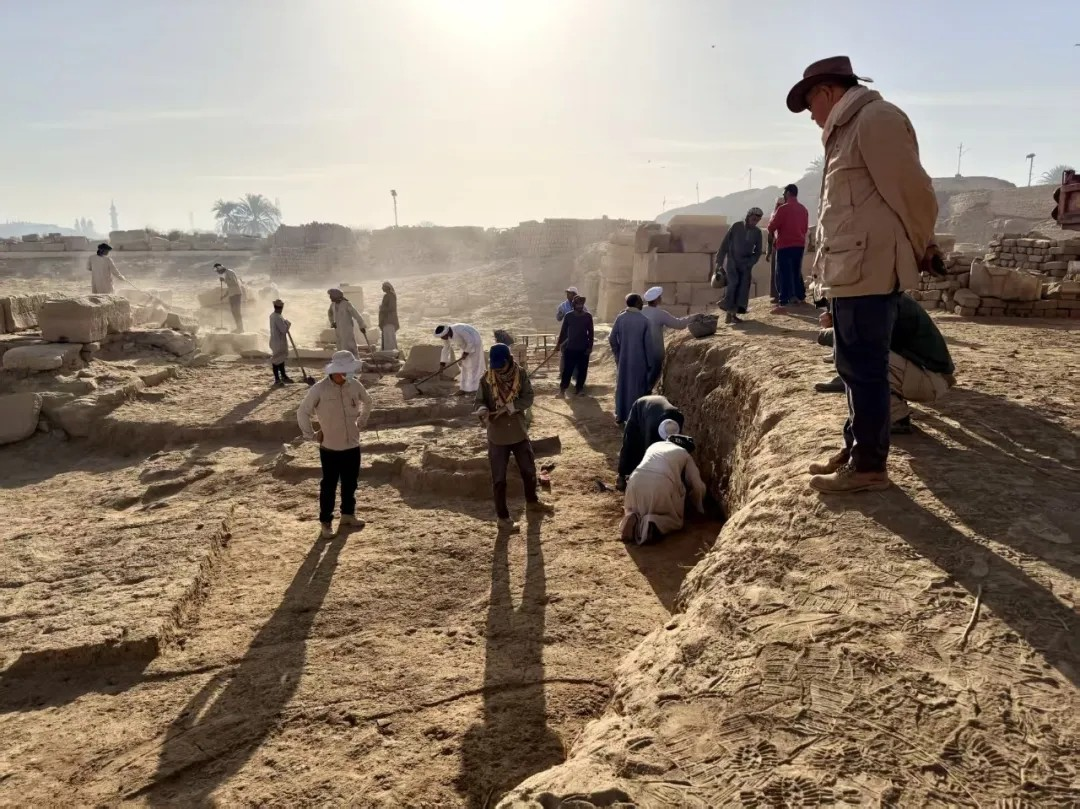 埃及尼罗河畔,卢克索的黄沙在晨风中轻扬,卡尔纳克孟图神庙遗址的探方里,中埃联合考古队的队员正俯身清理着古迹。手铲刮过土层的沙沙声、洛阳铲触碰砂石的脆响,与汉语、阿拉伯语、英语的交流声交织在一起,在这片承载古埃及文明的土地上回荡,共同奏响文明对话的乐章。