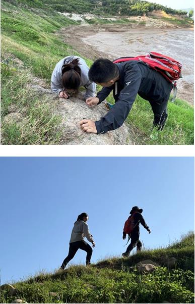 正是因为枯水期,黄河水退,遗址也慢慢显现出来,因此非常幸运能够参与上河曙猿化石遗址点考察,真正体会了地质学家古生物学家的不易,翻山越岭,穿梭山林,在泥岩里一遍又一遍的翻找化石,如同考古学一般在土里寻找着先祖的痕迹。而渑池上河曙猿化石遗址,位于河南省 渑池县南村乡任村村上河组,是世界最早的具有高等灵长类哺乳动物特征的曙猿化石遗址,是距今4500万年前的类人猿遗址,它的发现动摇了“类人猿起源于非洲”的论断,把类人猿出现的时间向前推了1000万年。渑池——垣曲盆地更是中国古近纪地层和始新世哺乳动物群的首次发现地,而发现人正是瑞典地质学家安特生,于1916年发现。而随后1921 更是发现仰韶村遗址,视为中国考古学的开端,渑池历史悠久,不仅是仰韶文化发源地,更是人类远祖起源之地。