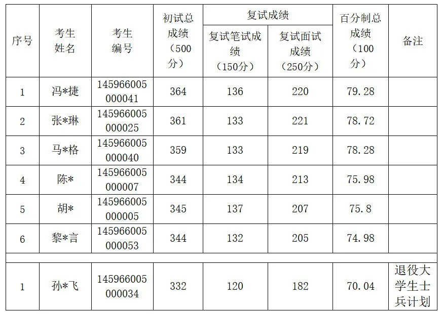 3.退役大学生士兵计划按照学校要求单列,初试分数不得低于教育部《全国初试成绩基本要求》中B类考生成绩要求,复试合格,择优录取。