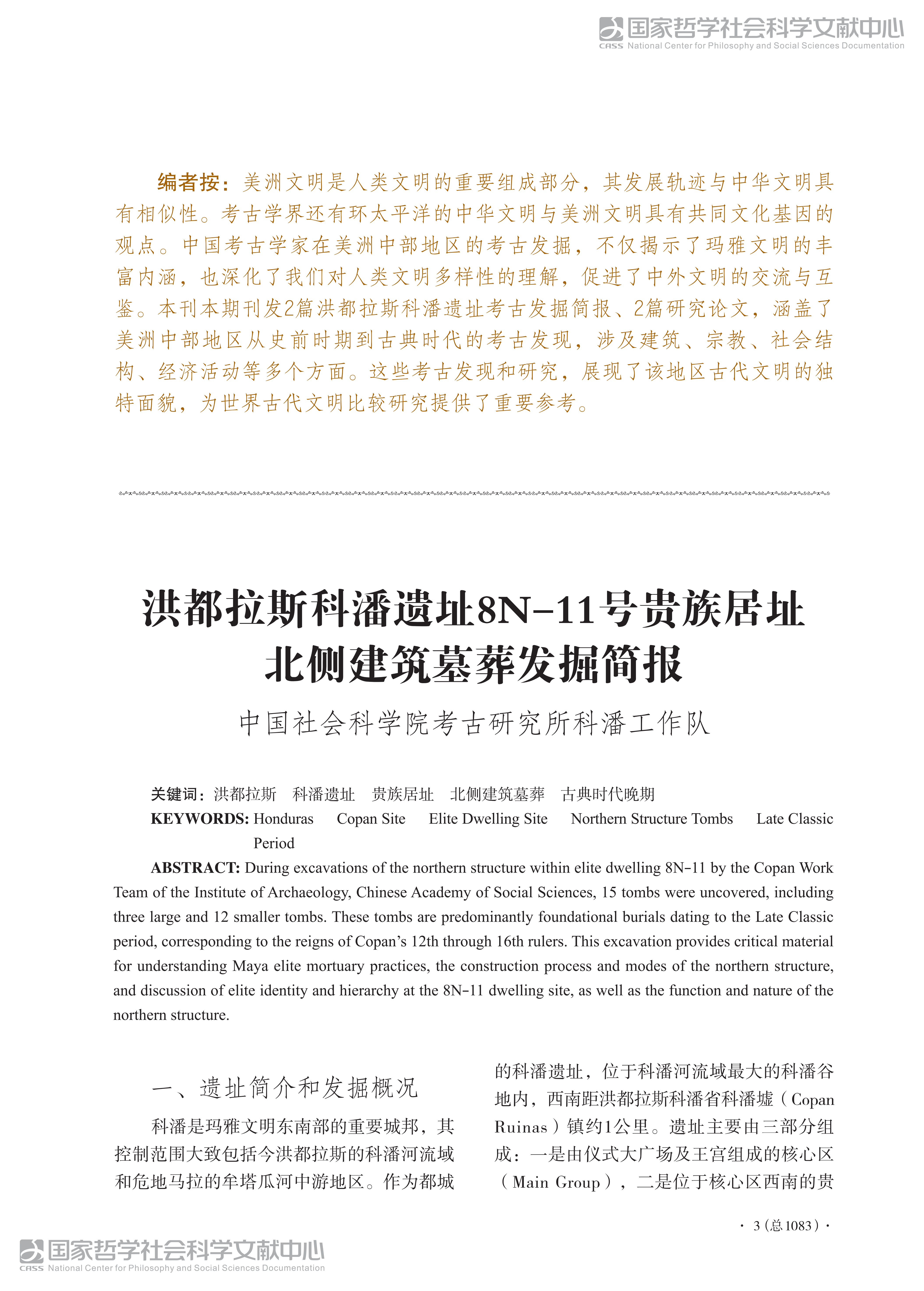 洪都拉斯科潘遗址8N-11号贵族居址北侧建筑墓葬发掘简报