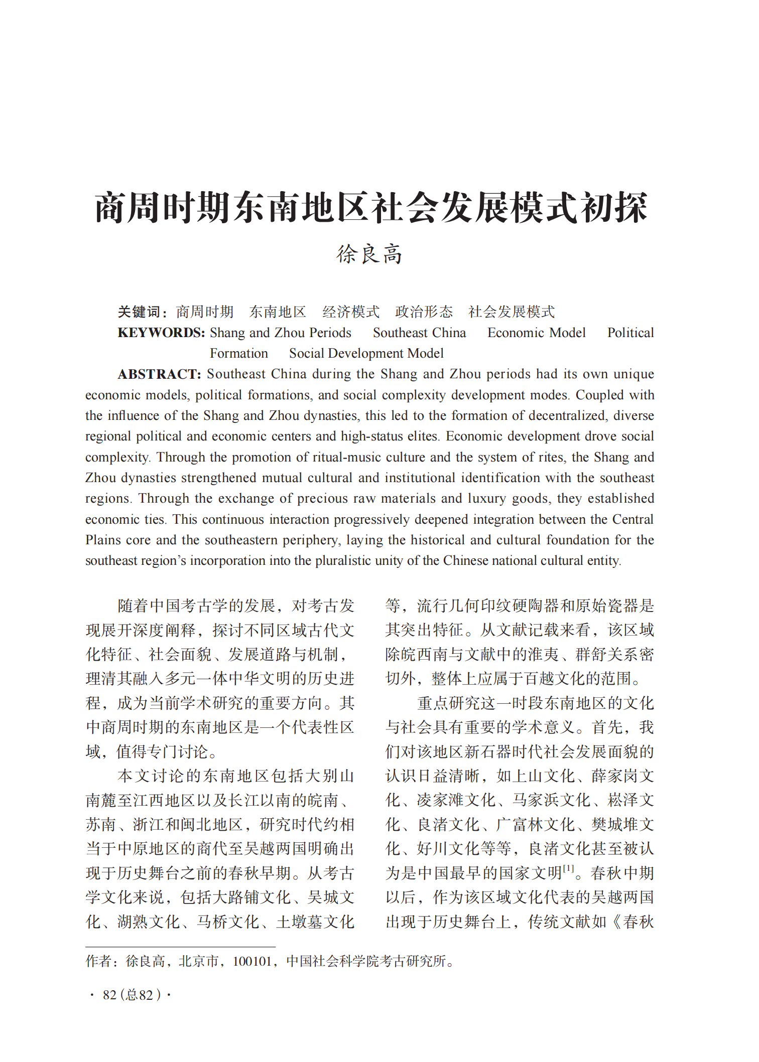 商周时期的东南地区有其独特的经济模式、政治形态与社会发展模式,加之商周王朝的影响,形成了特殊的区域性政治、经济中心,出现高等级人群,并推动了社会复杂化进程。基于礼乐文化与礼制的推广、贵重资源和奢侈品的交流,商周王朝与东南地区以经济联系强化彼此认同,促进了多元一体中华民族文化的形成与发展。