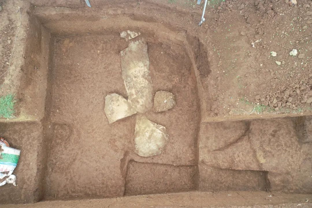 随葬玉器出土现场(玉琮、玉钺与玉环、玉锥形器、玉钺)