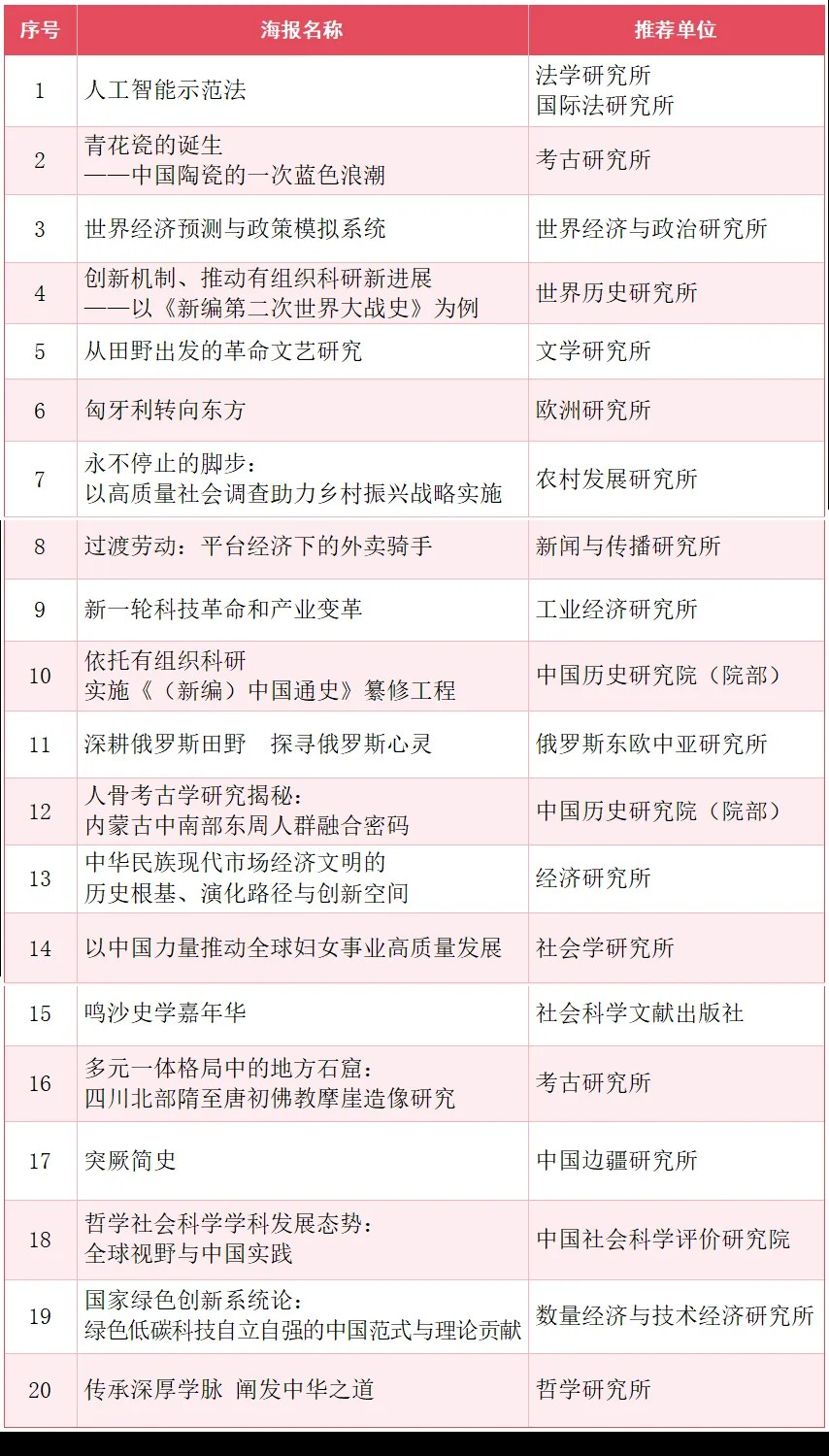 2025年12月,中国社会科学院法学研究所、国际法研究所推荐的《人工智能示范法》等20幅作品入选“中国社会科学院首届青年学术大会优秀学术海报”,通过交流学术思想、激发观点碰撞、推动学科发展,引领青年学者在加快构建中国哲学社会科学自主知识体系中贡献青春力量。