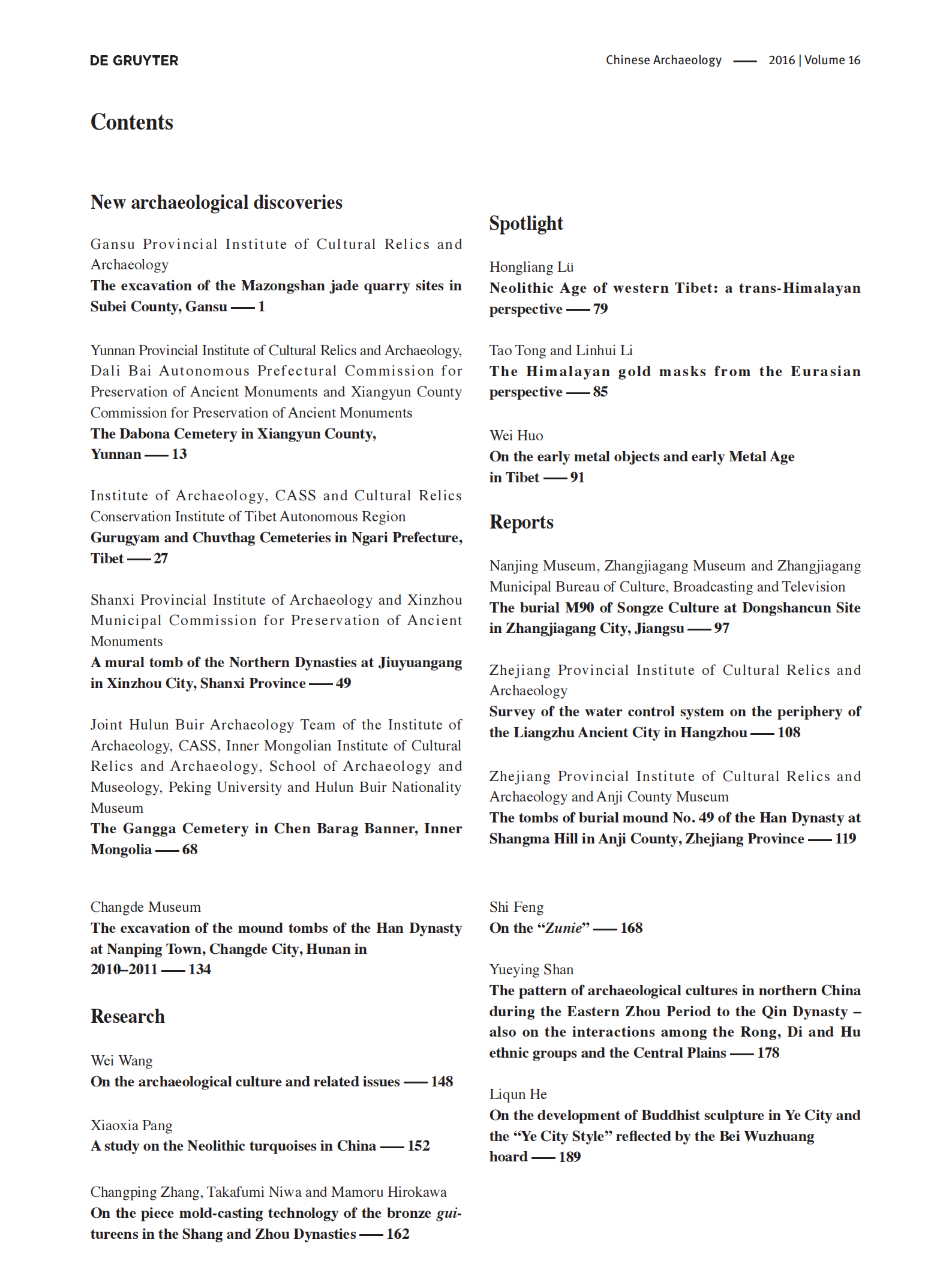 Chinese Archaeology VOLUME 16