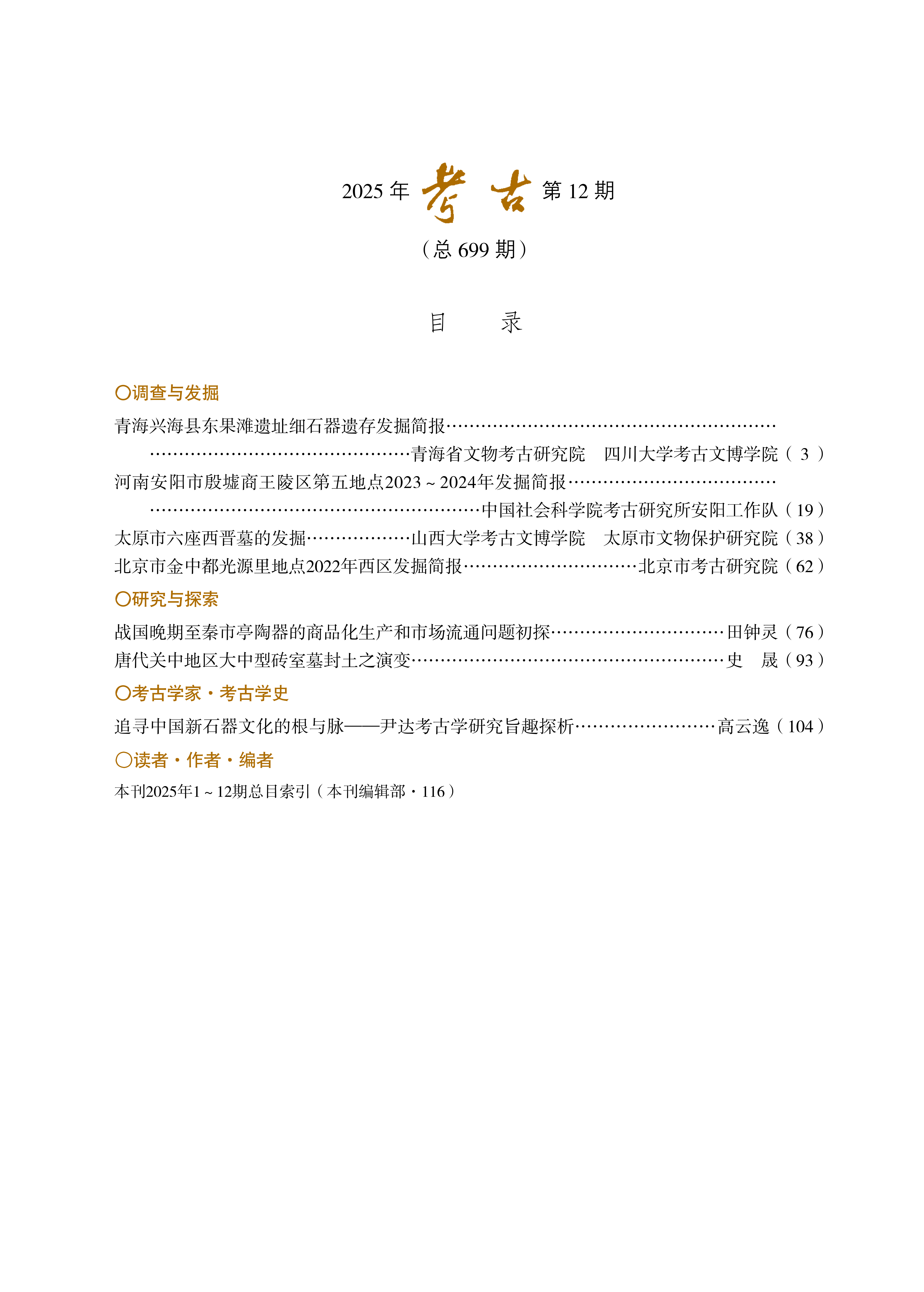 考古2025年第12期目录