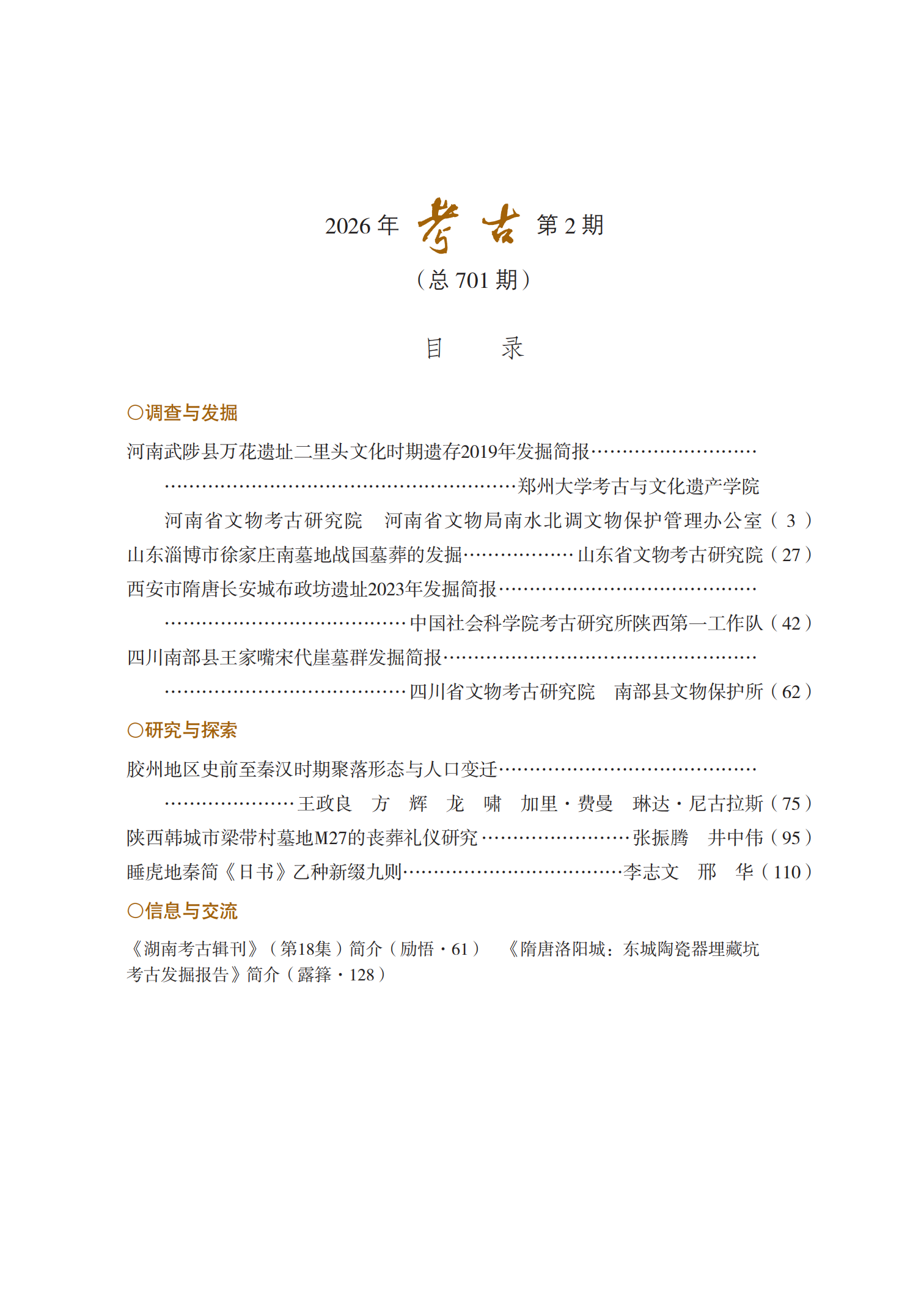 考古2026年第2期目录