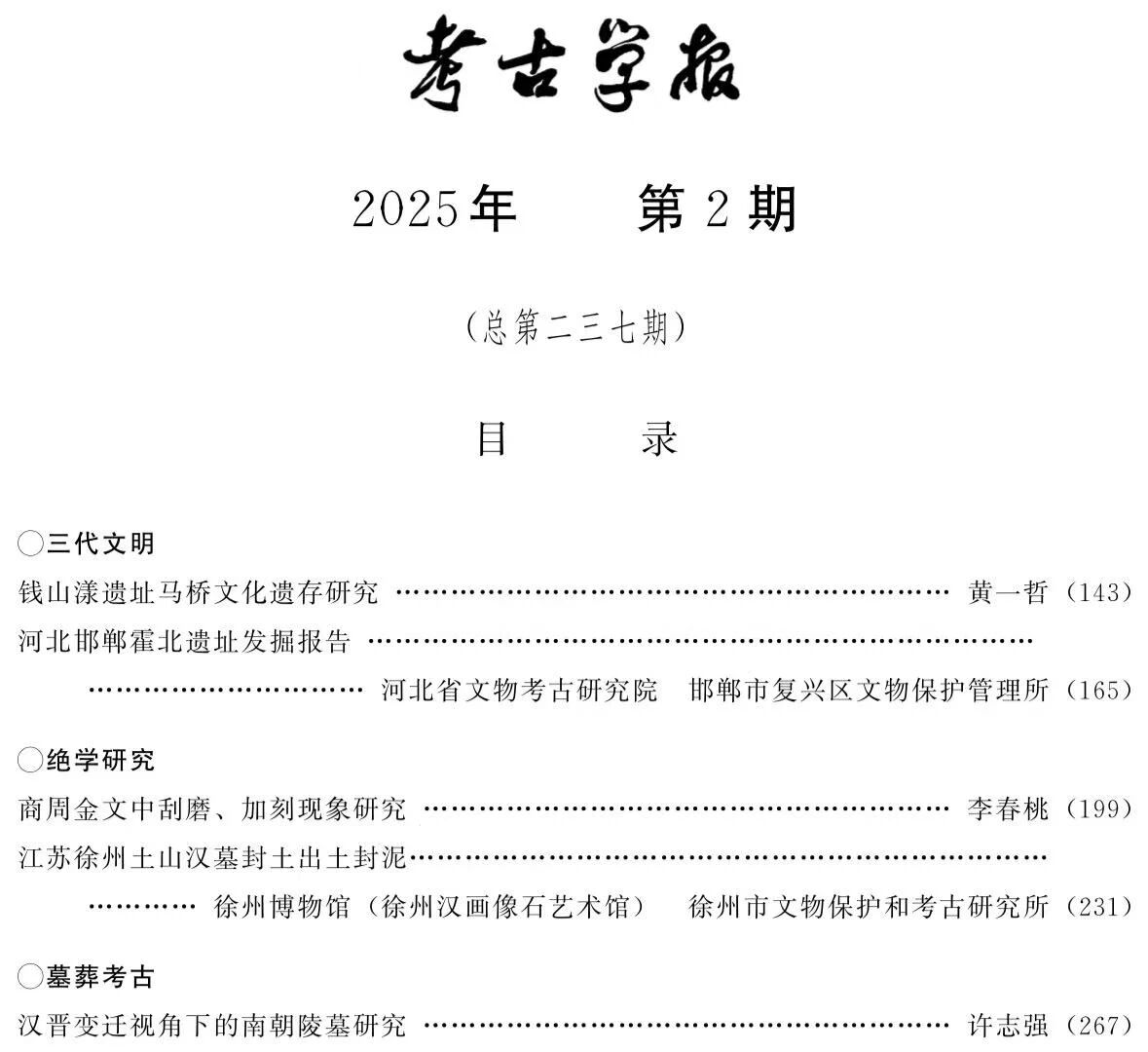《考古学报》2025年第2期目录