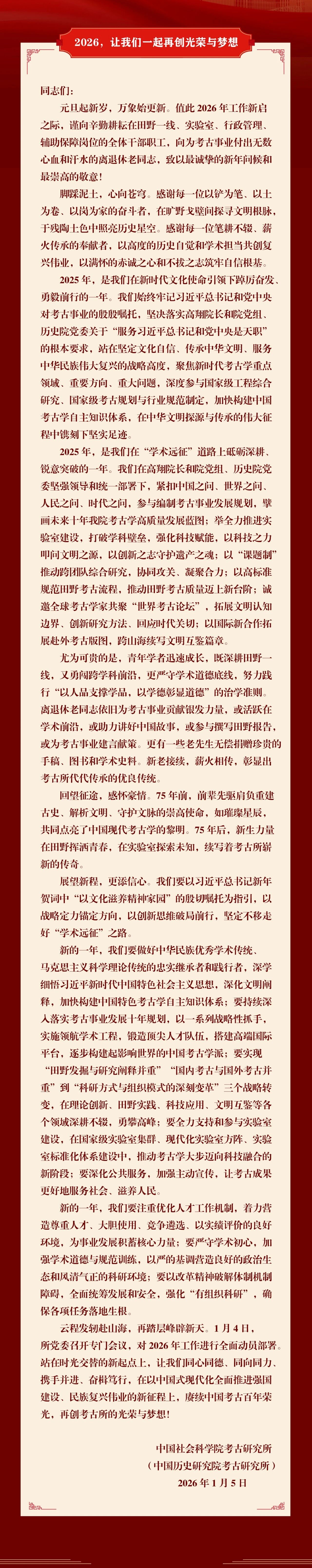 春节临近,为切实保障全所考古站队、田野工地、文物库房的安全,严格规范人员管理与公务用车纪律,全面压实节日安全责任,中国社会科学院考古研究所党委于2026年2月13日召开春节前安全工作专题会议。会议以线上线下相结合方式举行,所领导和各研究室与职能部门负责人、考古队长、全所春节值班员参加会议。