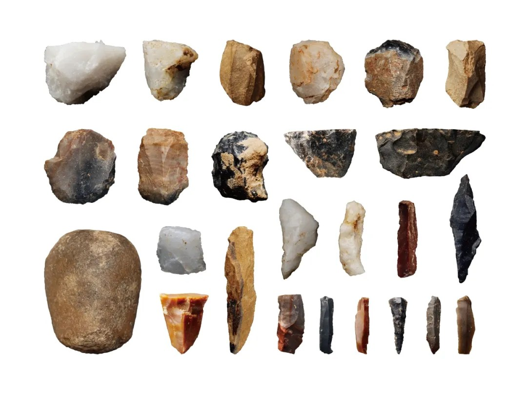 石料利用方面,早段以脉石英为主,中、晚段以脉石英和燧石为主,另见少量赤铁矿、灰岩和砂岩等。石制品以石片和碎屑数量最多,工具组合中刮削器占主导。自中段开始出现预制细石核,石器加工技术发生显著变化。