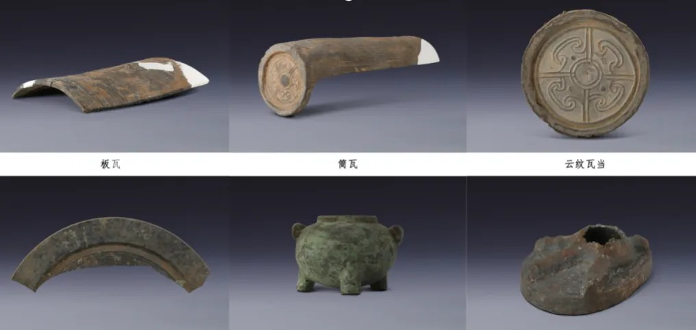 此外还发现了较为丰富的金属器和少量玉器。包括铁钉、铜泡等可能用于建筑之上的金属构件;铜镜、铜灯、铜罐、铜釦器等生活用具;铁锛、铁镞等工具和兵器。其中铜器、玉器多见于第二期宫殿建筑焚毁堆积之中,体量较大的铜器均为残片,玉器破碎程度更甚于铜器。