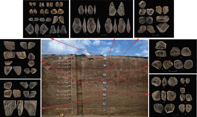 四川稻城县皮洛旧石器时代遗址 地层及出土文物 图片来自考古杂志社