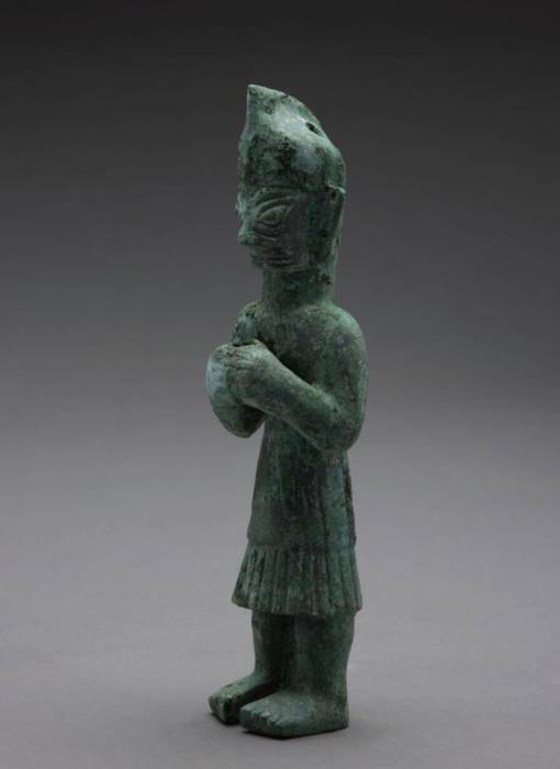 四川广汉市三星堆商代遗址 三号坑出土戴尖帽铜立人像 图片来自考古杂志社