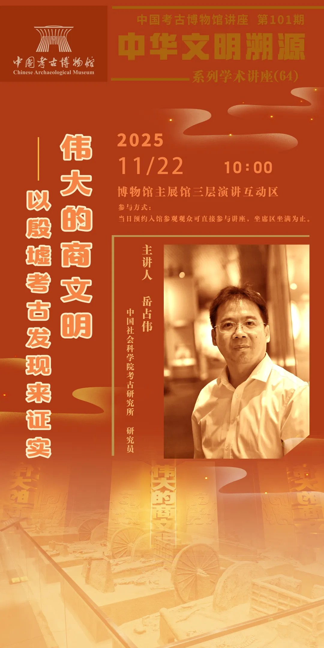 为推动中国考古文博事业高质量发展,更好认识源远流长、博大精深的中华文明,中国考古博物馆举办“中华文明溯源”系列学术讲座,邀请专家学者做客中国考古博物馆,与观众分享互动,聚焦关于中华文明起源与早期发展的重大考古发现和最新研究成果,为更好展示中华文明风采、弘扬中华优秀传统文化,建设中华民族现代文明贡献力量。敬请关注。