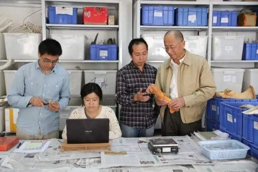 袁靖(右一)与吕鹏(右二)等人在动物考古实验室工作 吕鹏/供图