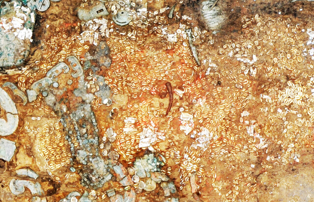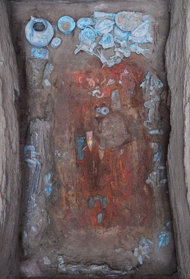 有意思的是,2号墓是一座女性的墓葬,却见有霸伯的铜甗,而没有见到与这位女性墓主有关的铭文。我们之所以判定2号墓墓主人是女性,主要是依据该墓随葬的物品,比如带梯形牌的串饰一般是女性的专有用品,另外就是没有随葬青铜兵器。像2号墓这样规模较大的墓葬如果是男性墓葬,在西周时期,不随葬兵器一般是不可能的事情。