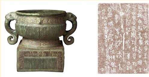 到了1号墓随葬的青铜器暴露出来的时候,可想而知我们当时急迫的心情。在一件大鼎的内壁,我们发现了铸刻得很浅的“伯作宝鼎”四个字,只是这还无法解决关键性问题。不过我们由此知道这座墓葬的墓主人是伯一级的贵族,即国君或族长。使我们惊喜的是,在一个铜簋的盖子内面我们发现了铸造有“霸仲作旅彝”字样的铭文,我们知道,伯、仲、叔、季是排行老大、老二、老三、老四的意思,而这个“霸”字应该就是国名或族名了。毕竟此时我们的证据还很少。之后,我们又在一本字书中查到了一个“霸”字的下部的写法与2号墓铜甗上的那个释读不出的字十分相似,我们由此推测2号墓铭文的这个?伯应该是霸伯。
