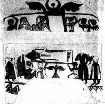 虞弘墓夫妇宴饮图下方胡腾舞图像