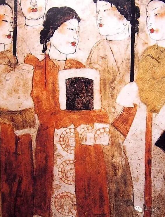 徐显秀墓壁画侍女裙上饰有连珠纹内有一头戴莲花冠的人头像
