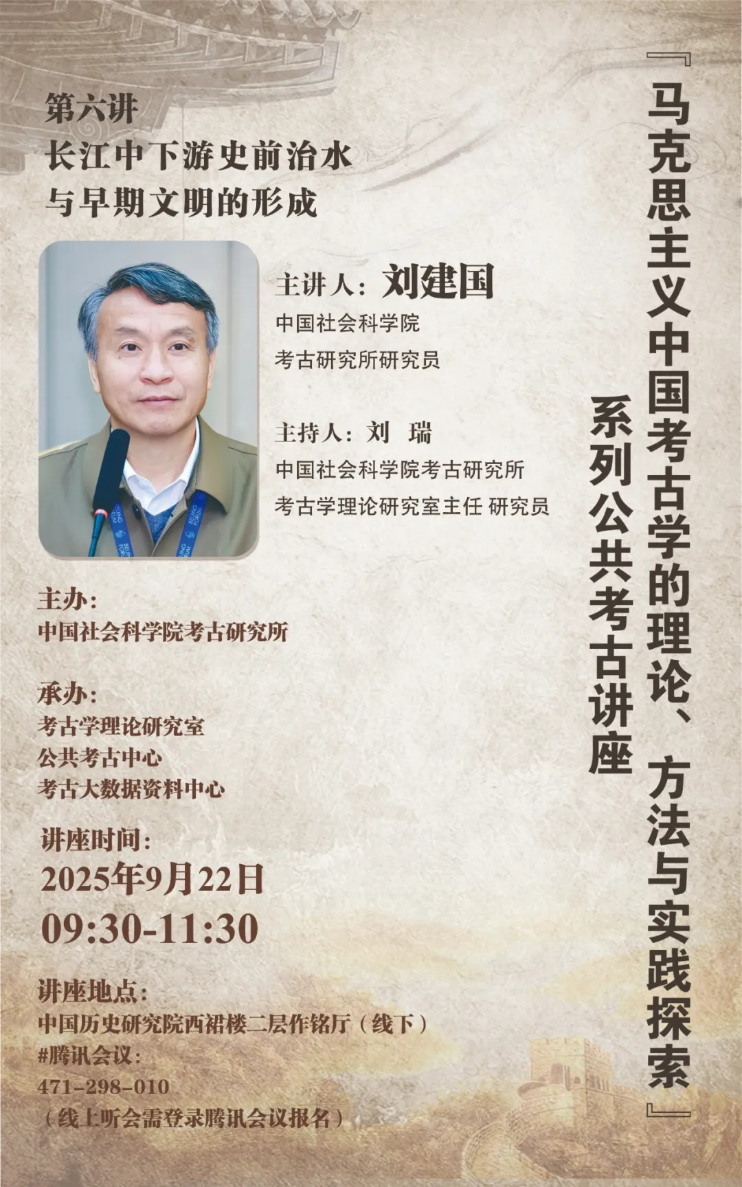 【讲座预告】“马克思主义中国考古学的理论、方法与实践探索”系列公共考古讲座 | 第六讲 长江中下游史前治水与早期文明的形成