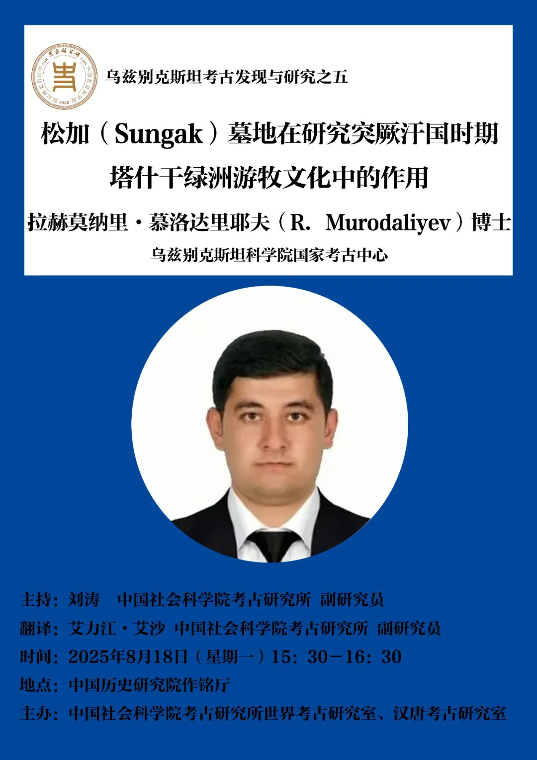 讲座题目:松加(Sungak)墓地在研究突厥汗国时期塔什干绿洲游牧文化中的作用