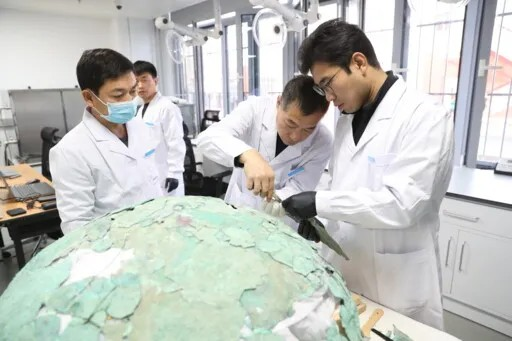 科技考古与文化遗产保护重点实验室工作人员正在进行修复工作 朱高磊/摄