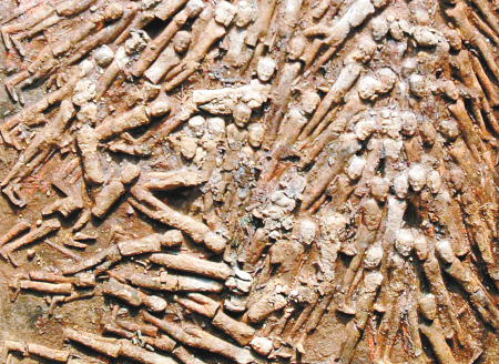 在M8的周围,考古专家先后发现6座大小不一的陪葬坑。揭开一座座陪葬坑,惊现“千军战俑”,有陶俑、木俑。正在发掘的k6号坑内,数以万计的陶俑虽倒在坑内,却个个精神抖擞,面部清晰,红红的嘴唇,浓黑的眉毛,还有着各种发式,有的神情凝重,有的面容祥和。“虽然陶俑这么多,却很难找到同样的脸。”史全平说。