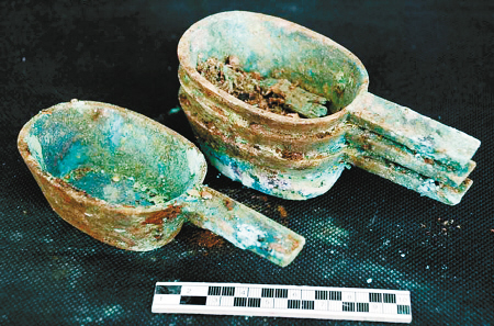“这些陶俑与汉阳陵的陶俑相似,大约60厘米高。”张仲立说,现在虽然看着陶俑都是赤身裸体,没有胳膊,但在胳膊处都留有孔,而在坑内专家们还发现了盔甲的残片,可见这些陶俑原先都穿有各种各样的衣服。而在坑内,出土了大量的兵器铜镞、刀、箭等,还有十分少见的6金6铜的青铜钟,还有做饭用的陶釜。
