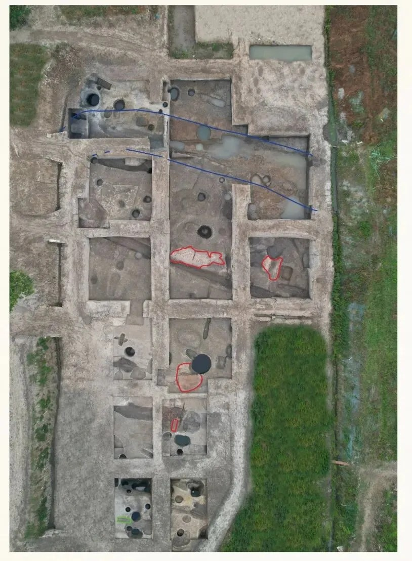 “后马桥文化”时期遗存是塘北遗址近年发掘的重大发现,在遗址地块的北部一处“后马桥文化”时期的基本聚落结构显现。