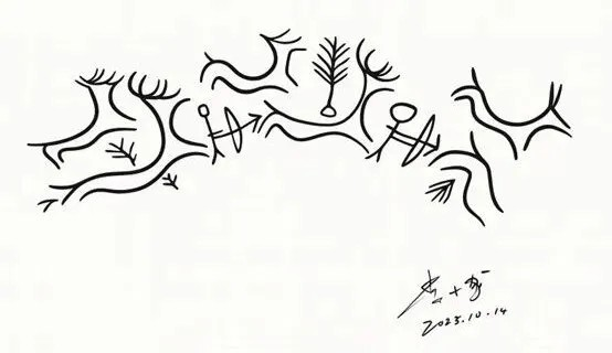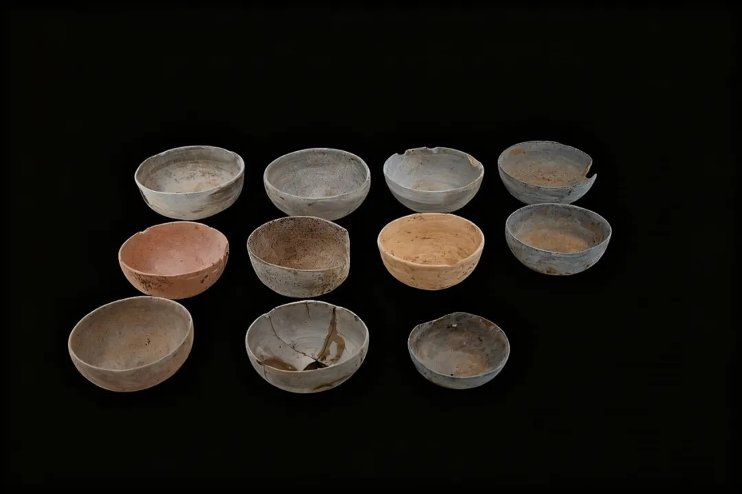 在出土遗物中,一件内壁刻划有“狩猎纹”图像的陶盆残件尤为引人注目。画面描绘了两人张弓搭箭,在林木间追逐猎捕群鹿的生动场景。线条流畅有力,构图生动写实,生动再现了先秦时期岭南先民的狩猎生活,是难得的岭南战国时期图像记录。此外还发现了一件战国时期陶塑人像,栩栩如生地再现了古越人典型的“魋结箕倨”形象,提供了《史记》相关记载的实物佐证。