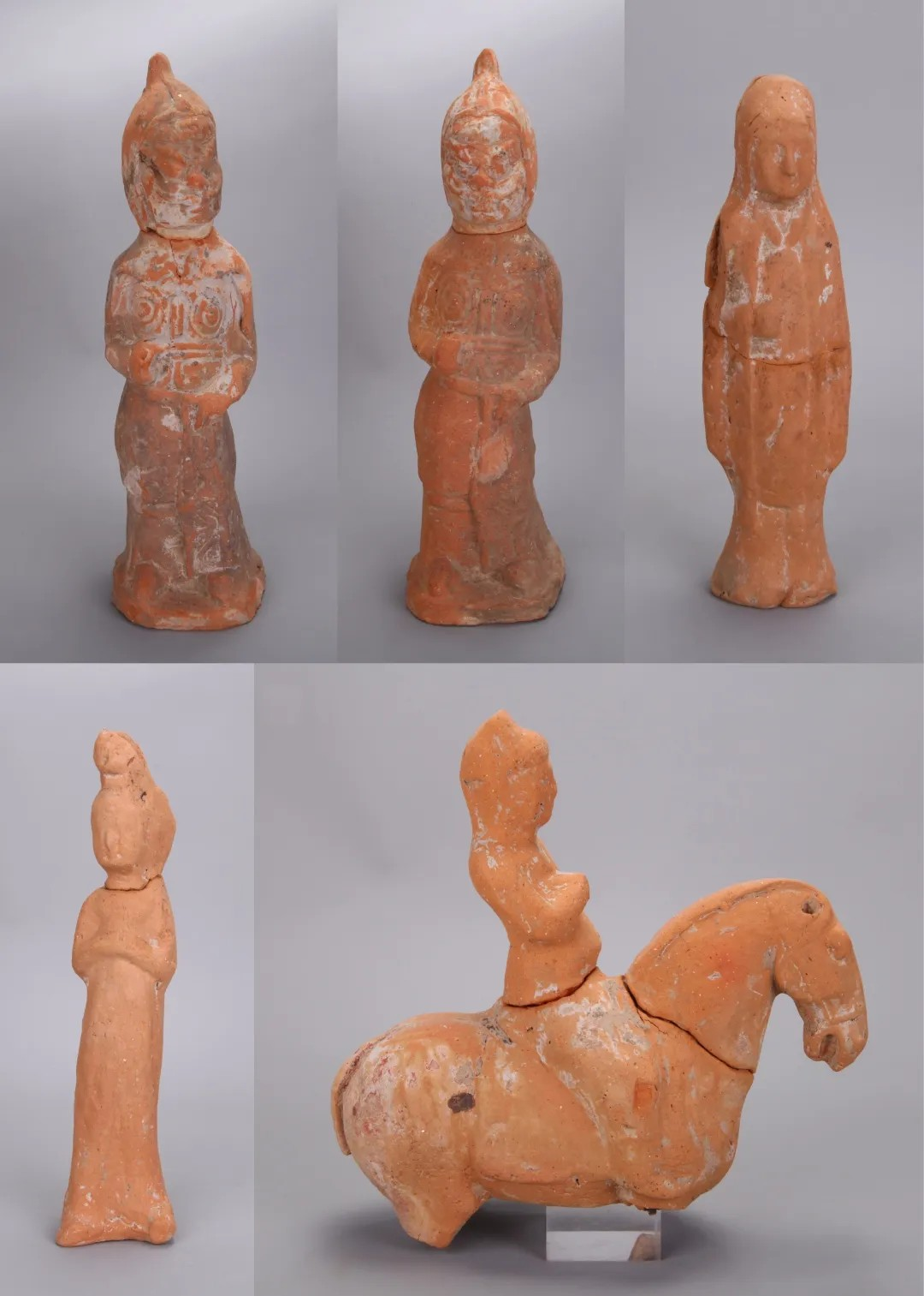 墓室入口两侧出土2件持盾武士俑,墓室西部出土2件陶俑,墓室东北部出土较多残陶俑及陶器残片。该墓共出土器物21件,有陶人物俑15件、陶骑马俑2件、陶武士俑2件、陶器盖1件和残陶器1件。