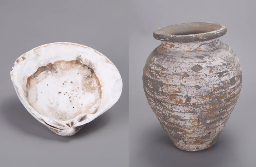 该墓因被盗扰,只在墓室西北部出土陶罐1件、贝壳1件和乾元重宝铜钱1枚。