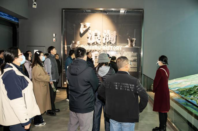 随后,参观嘉宾前往盘龙城遗址博物院考察。讲解员殷晓梦、胡嫄嫄为参观嘉宾热情讲解了常设展览“江汉泱泱 商邑煌煌——盘龙城遗址陈列”,并带领与会代表前往遗址区实地考察,详细介绍了盘龙城遗址70余年的考古工作历程与丰硕成果,参观嘉宾纷纷赞叹盘龙城遗址作为长江流域早期青铜文明中心、“武汉城市之根”的璀璨文明。