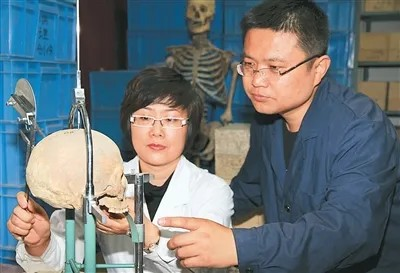 二〇一〇年,中国社会科学院考古科技实验研究中心张君(左)和王明辉在开展人骨研究。王明辉供图