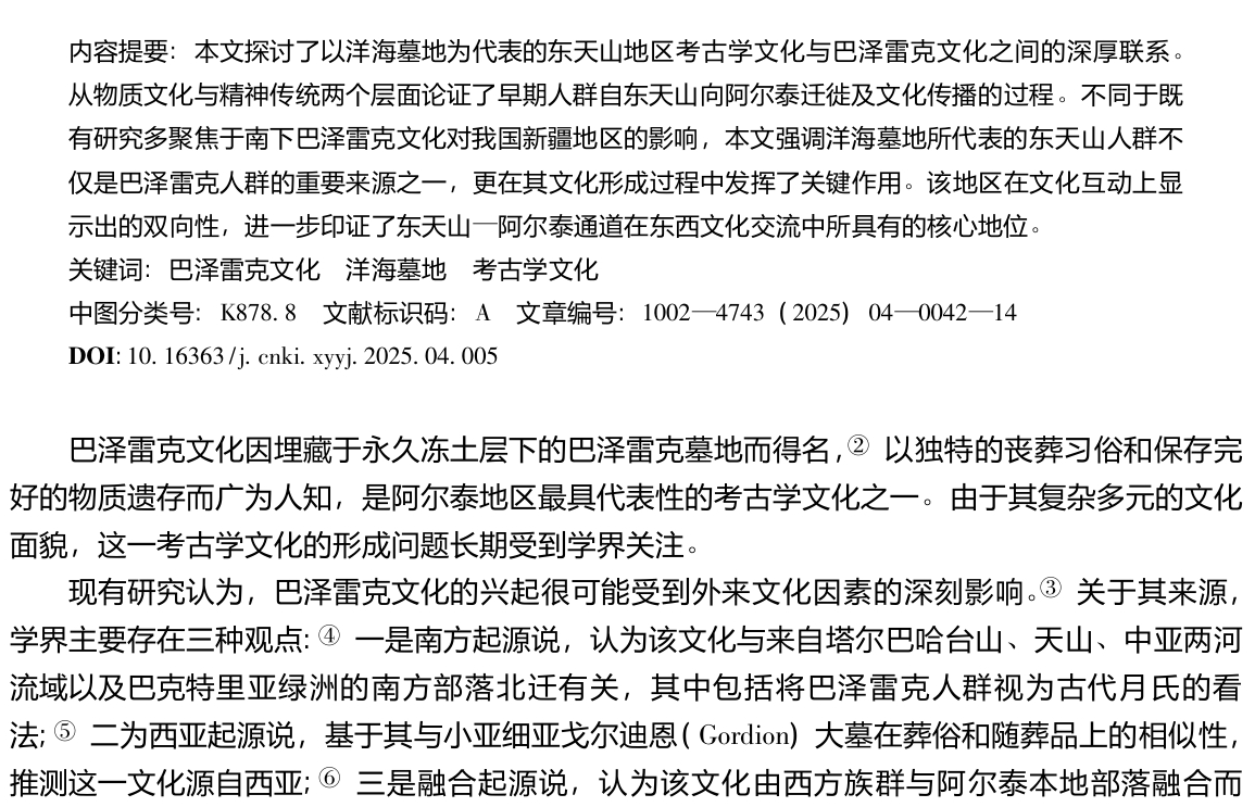 从东天山到阿尔泰:巴泽雷克文化来源新探