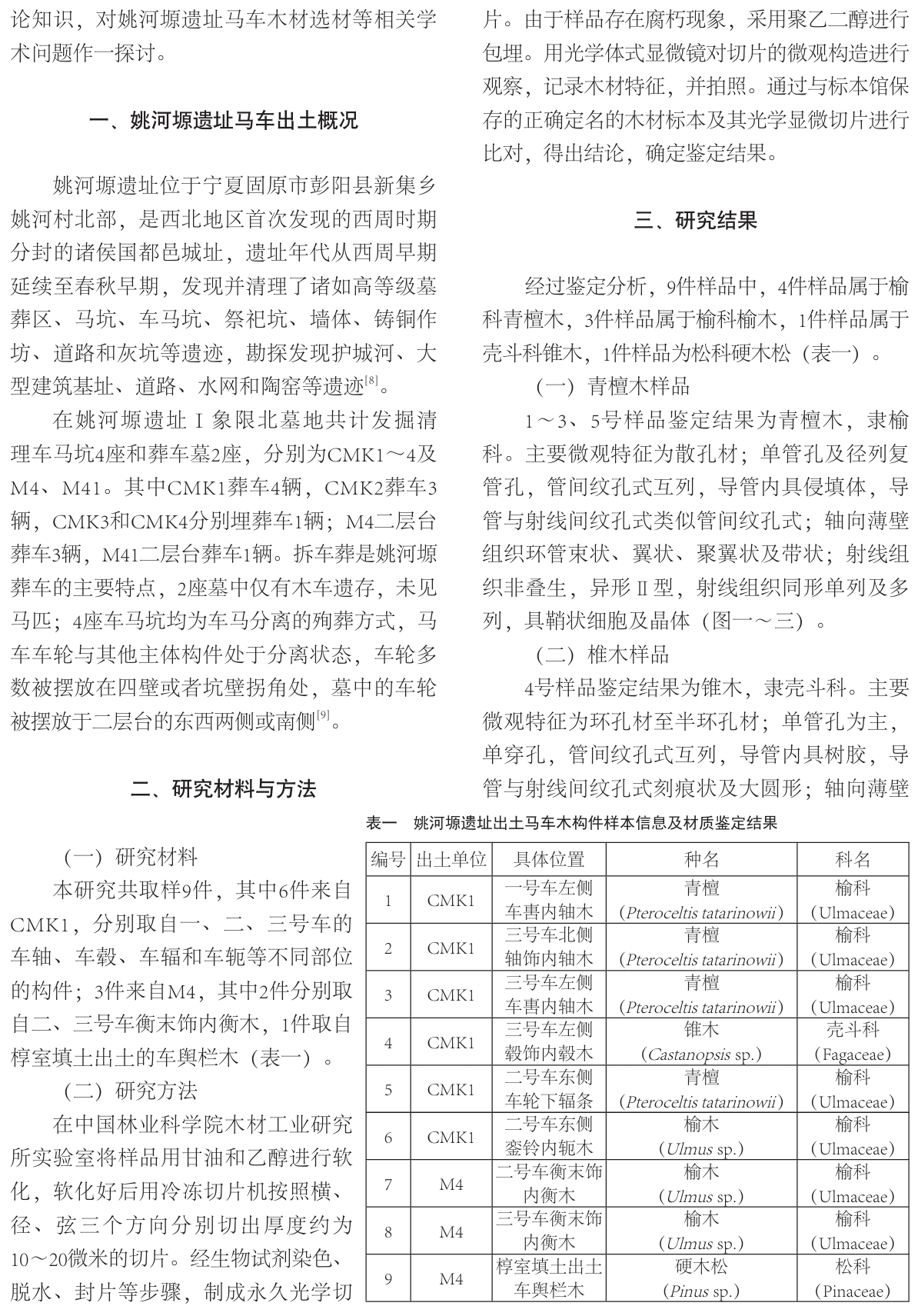 宁夏姚河塬遗址出土马车木材鉴定与相关问题