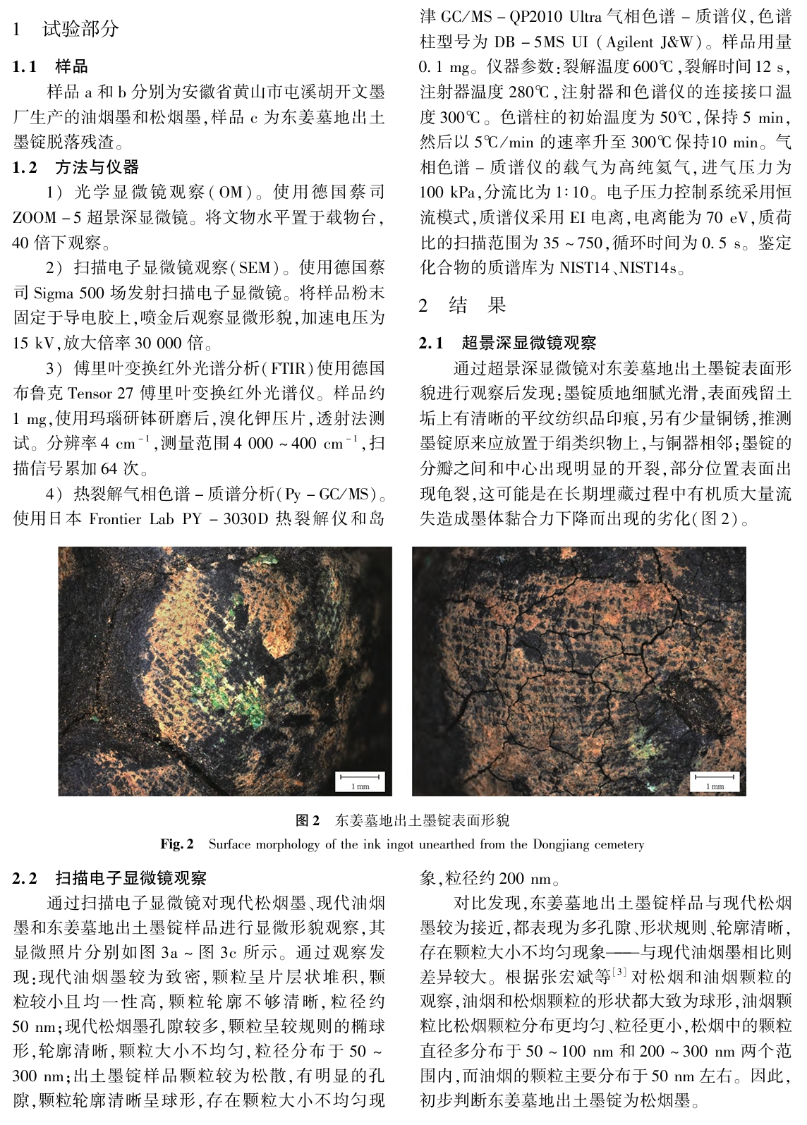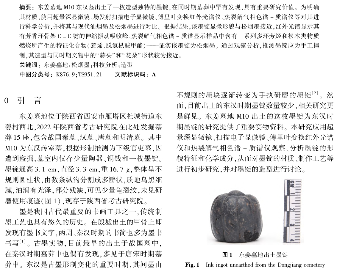 陕西西安东姜墓地出土墨锭的科技分析与工艺研究