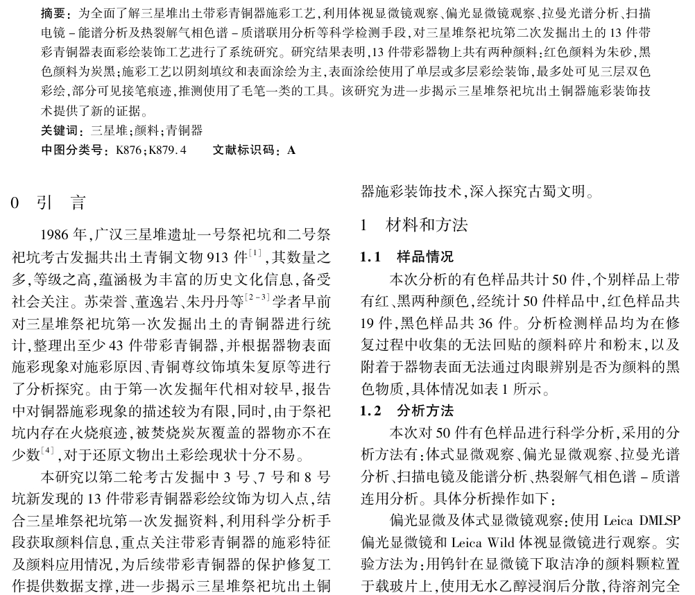 三星堆出土带彩青铜器颜料科学分析与工艺研究