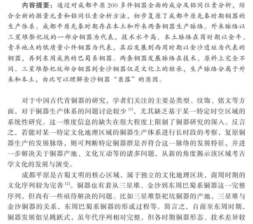 作者:黎海超(四川大学考古文博学院、四川大学考古科学中心);崔剑锋 陈建立(北京大学考古文博学院);周志清 左志强 田剑波(成都市文物考古研究院)