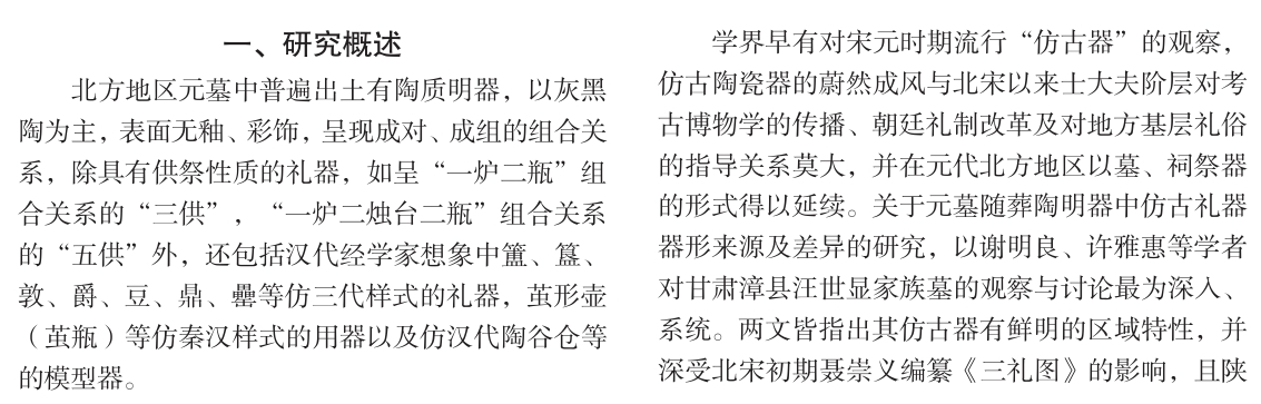 关中元墓出土仿古陶器组合的比较与分析——以西安新小寨元代赵氏家族墓为例