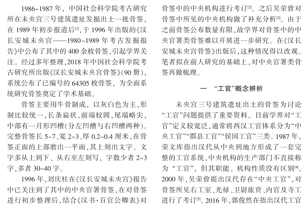 汉未央宫中央官署类骨签研究