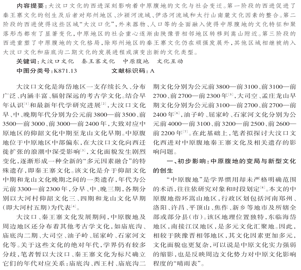 变局与重塑:大汶口文化西进对中原腹地的阶段性影响