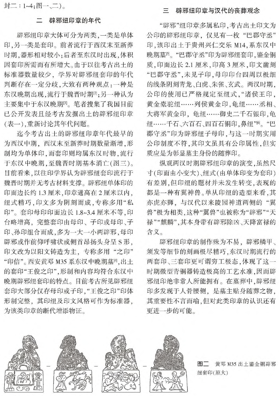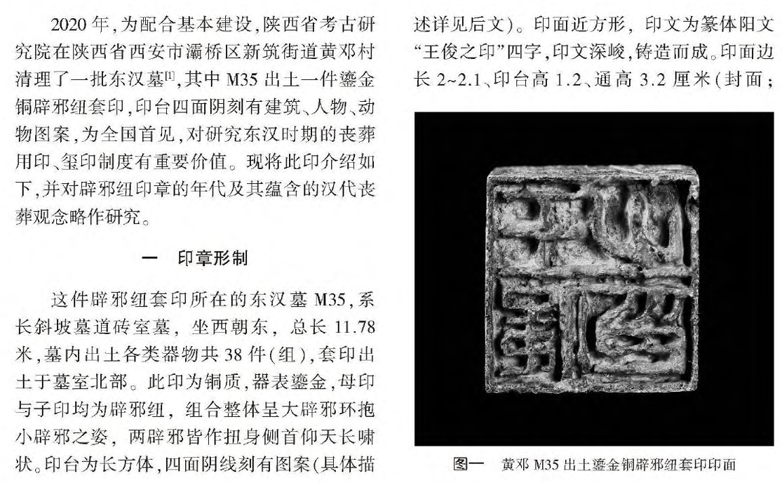 西安黄邓东汉墓(M35)出土鎏金铜辟邪纽套印读札